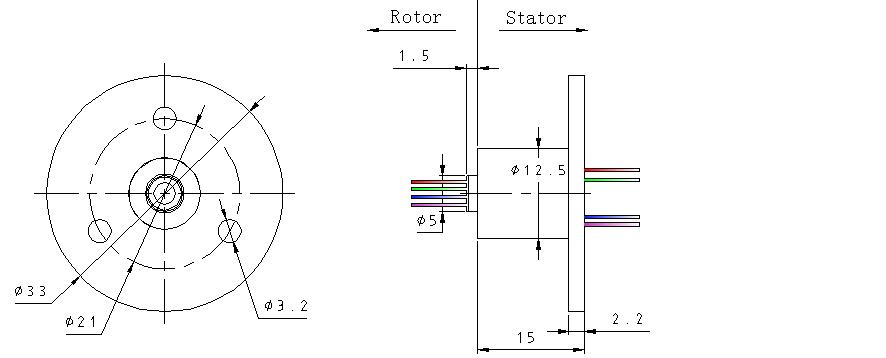 ◆ Srm-12-06f is a standard cap type slip ring, with an outer diameter of 12.5mm and a length of 15mm, 6-way * 1.5A (signal)
